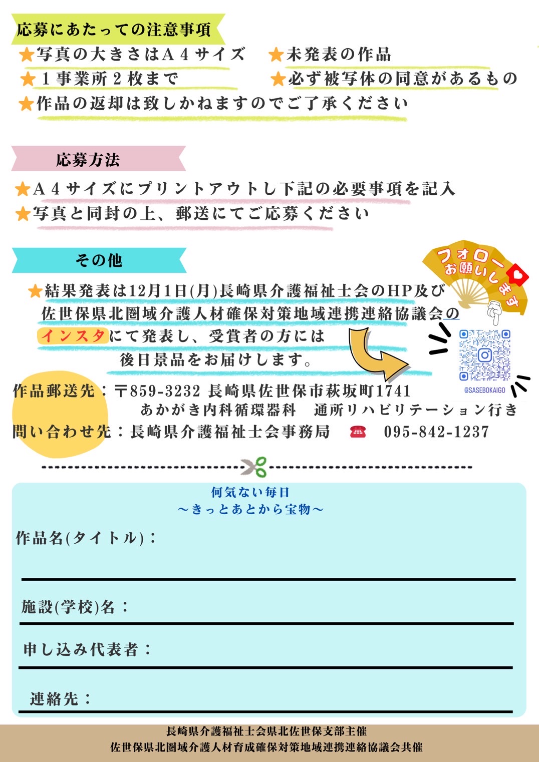 ※結果発表は12/1(月)長崎県介護福祉士会HPおよび佐世保県北圏域介護人材育成確保対策地域連絡協議会のInstagramにて発表します