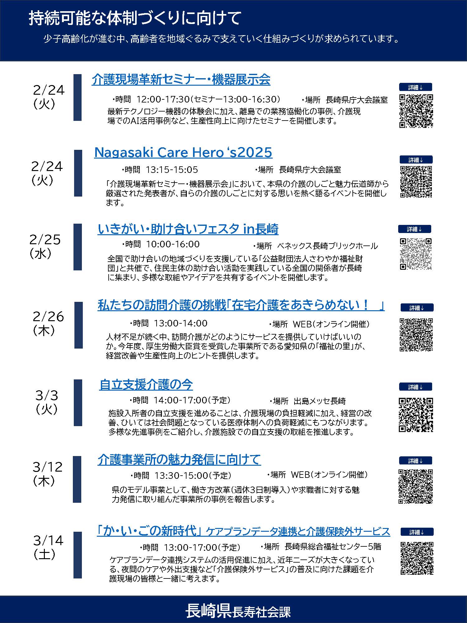 長崎県長寿社会課からのイベント案内 2026年2月16日 最終更新日時 : 2026年2月16日 作業者ミナサポ ▼ 資料はこちら 26-02-24介護現場革新セミナー・機器展示会ダウンロード 26-02-24Nagasaki Care Hero‘s2025ダウンロード 26-02-25いきがい・助け合いフェスタ in長崎ダウンロード 26-03-12介護事業所の魅力発信に向けてダウンロード